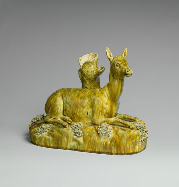 This earthenware "Hind," made by Ralph Wood the Younger, presents us with an animal that is both earthly and ethereal. The reclining deer, a symbol deeply rooted in ancient mythology, immediately brings to mind Diana, the Roman goddess of the hunt, and her connection to the wild. The deer, with its gentle eyes and graceful form, has long represented innocence and purity. We see echoes of this symbolism in medieval tapestries and Renaissance paintings, where the deer often accompanies virtuous figures. In the East, the deer is a sacred animal, revered for its wisdom and longevity. But here, the deer is rendered in a somewhat melancholic pose, its gaze distant. Does it evoke a sense of vulnerability? Perhaps it is a reminder of the fleeting nature of beauty and the inevitable encroachment of civilization upon the natural world, a theme that continues to resonate even today. Note that this image of nature, frozen in time, continues its non-linear voyage through our collective consciousness.