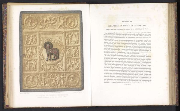 This is a photograph by Charles Marville of an ivory book cover that depicts three biblical scenes in relief: the Annunciation, the Adoration of the Magi, and the Massacre of the Innocents. These panels, likely made somewhere in Europe during the medieval period, were once part of an evangeliary, or Gospel Book. The scenes represented emphasize key theological themes, like the divinity of Christ and his recognition by both heavenly and earthly authorities. The choice of ivory as a medium is also significant. Its expense and association with exotic lands imbued the object with status. It also speaks to the importance the Church placed on the Gospels. These objects were clearly intended for the use of wealthy religious institutions. To gain a fuller understanding of the original object, we might consult medieval church records, or studies of ivory carving and the book trade at the time. By situating the book cover within its proper historical context, we can learn much about the ways in which the Church sought to convey its message of spiritual authority.