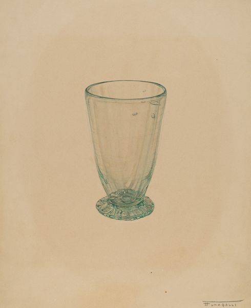 Editor: This is a graphite drawing titled "Cordial Glass," created around 1936. It features a very delicate stem glass, rendered in subtle gradations of gray. I’m struck by the contrast between the fragility of the object and the seemingly laborious process of its rendering in pencil. What are your thoughts on the work's connection to its medium? Curator: I immediately consider the choice of graphite, a common and relatively inexpensive material, used to depict an object typically associated with refinement and perhaps even luxury. Graphite, often used in industrial contexts for lubrication, becomes a tool for representing a domestic object. What does this tension between the material and its subject suggest to you about class, production, or consumption during the 1930s? Editor: Well, the 1930s was, of course, a period of great economic hardship. Perhaps the drawing is subtly highlighting the desire for luxury goods during times of struggle, rendered through the mundane, everyday reality of accessible materials. Does the very act of drawing this object in graphite suggest a critique of, or perhaps a longing for, consumer culture? Curator: Precisely. Think about the labor involved in creating this image. The artist meticulously records every facet and curve. The shadow becomes almost as important as the glass itself. The drawing elevates the everyday. How does the accessibility of the medium reshape your interpretation of its symbolism and message, especially if another medium were used? Editor: It definitely reframes it. If it were a painting, say in oil, it might seem like just a still life. But with the use of accessible materials, the act of drawing transforms this seemingly simple object into a kind of social commentary. Thank you for your insight. Curator: My pleasure. Analyzing the relationship between materials, process, and historical context is often illuminating.