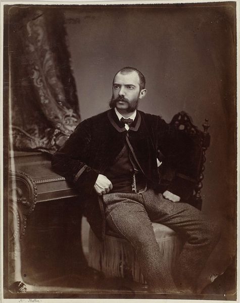 This photograph, possibly a self-portrait, was made by Louis-Rémy Robert sometime in the mid-19th century. It's an albumen print, meaning that the image is formed on paper coated with egg white and silver salts. The process itself is fascinating, and deeply rooted in chemistry. The albumen creates a smooth surface, allowing for a high level of detail and a wide tonal range, evident in the man’s sharply defined features and the subtle gradations of light and shadow. But it's also a labor-intensive procedure, demanding careful preparation and handling of the materials. The rise of photography in the 19th century, with its reliance on chemistry, skilled darkroom practice, and also on the industrial production of materials like paper and silver, changed our very understanding of art-making. It introduced reproducibility and objectivity to the portrait, impacting painting and other disciplines. By engaging with this new medium, Robert challenged established hierarchies between art and technology, craftsmanship and industrialization.