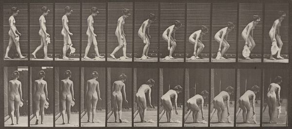 Eadweard Muybridge created this photographic study of a woman's movement, "Plate Number 204. Stooping to pick up a ball" during the late 19th century. At a time of burgeoning scientific inquiry and rigid social norms, Muybridge meticulously captured a nude woman's gestures, freezing her actions into discrete frames. Note how the grid format is reminiscent of scientific observation. The nudity of the subject invites us to consider the historical objectification of women’s bodies within both scientific and artistic contexts. By methodically dissecting and recording her movements, Muybridge transformed the model into a specimen for examination. The final presentation lacks the subjectivity of lived experience, instead focusing on the mechanical aspects of motion. As we consider the artwork, we may ask ourselves: Does the clinical observation override the model's individuality? Or does the breakdown and isolation of the body invite us to focus on a celebration of movement?
