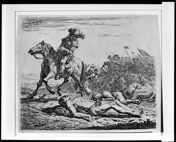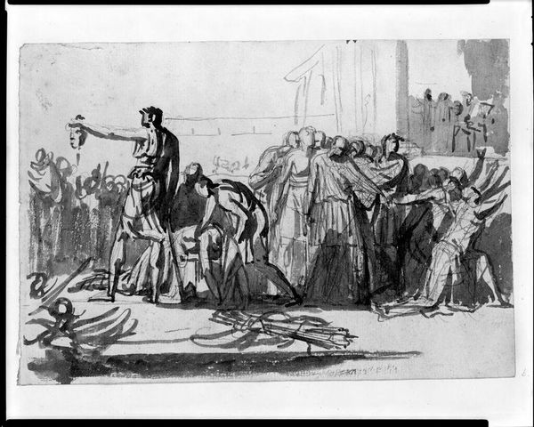 Editor: This little drawing, "Homecoming," by an imitator of Adrian Ludwig Richter, feels so festive! It's hard to ignore the labor and craft evident in the etching. What's your take on it? Curator: Notice how the artist, or rather, the imitator, painstakingly recreates a specific social performance, the welcoming celebration. It reveals the artist's role as a manufacturer of culture, and we might ask, what are they selling here? Editor: So, you see it as a commentary on cultural production? Curator: Exactly. The "homecoming" itself becomes a commodity, mediated by the artist's labor. It makes me wonder about the conditions of the artist’s production – was this commissioned? Editor: That's a perspective I hadn't considered. It shifts the focus from the sentimental scene to the economics of art. Curator: Indeed. It’s a reminder that art doesn’t exist in a vacuum.