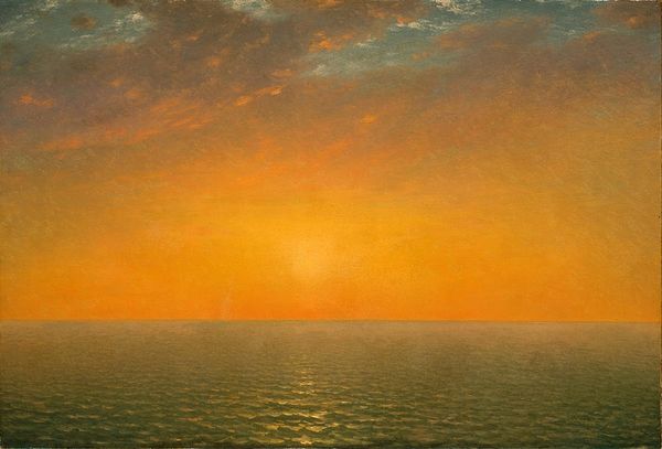 Editor: This is "Sailboats at Sea Evening," attributed to Ferdinand du Puigaudeau, and appears to be watercolor or ink on paper. The overwhelming pinks and oranges create a really intense, almost dreamlike effect. What strikes you most about it? Curator: I'm immediately drawn to the materiality. Look at the way the watercolour bleed creates this shimmering effect. The surface tension between pigment and paper. This wasn't just about depicting a sunset, it's about exploring the physical properties of the materials themselves. It moves beyond pictorial representation, don’t you agree? Editor: I can see that. I was focusing on the scene itself, but the way the paint is applied really does become the focal point. The brushstrokes feel almost performative. Curator: Precisely! And that’s key to its historical context. How does the labor manifest? What kind of brushes were used to make those expressive, rough strokes? Was it the intention to foreground this element, rather than skill and 'finish'? These aren’t separate, remember. Editor: That makes me think about how the rise of industrially produced paints might have affected artists' approaches to their work, if that makes sense? Being so readily available perhaps enabled artists to experiment. Curator: Exactly. The democratization of materials, allowing for a shift from artisanal creation toward something more focused on gesture and immediacy. Do you think this contributes to our modern understanding of "fine art" versus more humble modes of expression, perhaps in craft? Editor: I suppose it challenges that old hierarchy. Before, the 'skill' was more prized; the quality of materials almost subservient to the technique, if the painting could mimic or represent something real. This puts process and medium up front. Thanks; I had never looked at paintings quite that way! Curator: Paying close attention to what is actually *in* front of you helps deconstruct some old ideas. Now, let’s consider how mass culture impacted what was shown at galleries….