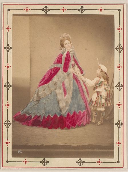 Pierre-Louis Pierson created this photograph, “The Red Bow,” during the Second Empire in France, a period defined by rapid social and political change. Pierson was known for his portraits of elite women, particularly his close relationship with Countess Virginia di Castiglione, a prominent figure in Parisian society, who is the subject of this photograph. Her striking beauty and involvement in political circles made her both celebrated and scrutinized, embodying the complex role of women in 19th-century high society. In this image, Castiglione’s identity is carefully constructed through her elaborate dress and the theatrical pose. The red bow serves as a focal point, drawing attention to her constructed femininity. The ornate frame further emphasizes the Countess's elevated status, setting her apart from the ordinary. Consider how this photograph, while seemingly a celebration of beauty and status, also reflects the limited roles available to women, where influence was often mediated through appearance and social connections.