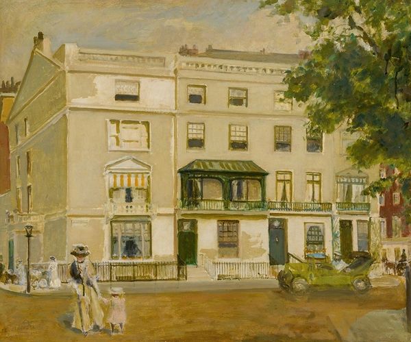 William Collins painted this view of Sir David Wilkie's house in Kensington, likely in the first half of the 19th century. It offers a glimpse into the domestic life of a successful artist in Britain during that era. The painting's composition, with its focus on the architecture and surrounding landscape, speaks to the increasing social status of artists. Wilkie's home isn't just a place of residence; it's a statement of his achievement and a reflection of the cultural value placed on artistic talent. The setting in Kensington, a desirable area, further emphasizes his standing. The detailed rendering of the house and garden, along with the figure in the grounds, subtly hints at the social rituals and class structures of the time. Understanding this artwork requires us to investigate not just the lives of Collins and Wilkie, but also the broader economic and social conditions that enabled artists to rise in prominence. By consulting period documents like letters, exhibition catalogs, and social commentaries, we can better interpret the painting's significance within its original context.