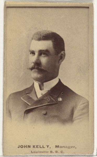 Editor: Here we have a photograph entitled "Portrait of an Unknown, possibly Meir Wachenheimer," dating between 1870 and 1920, attributed to Anton Hruschka. It's an albumen print. What strikes me most is its subdued, almost monochromatic palette. What visual elements stand out to you? Curator: The most arresting feature, formally speaking, is the subtle gradation of tones across the composition. Note how the figure emerges from the creamy ground, edges softening to suggest form. Consider, too, the cropping. The subject's placement, slightly off-center, generates a dynamic tension. The gaze is averted, further destabilizing the image's symmetrical potential. Editor: So, the asymmetry is deliberate and crucial to its visual impact? Curator: Precisely. The artist manipulates what might have been a static portrait convention into a field of interacting visual forces. Look at the detail, for example, in the rendering of the mustache, then compare it to the soft-focus rendering of the jacket. Why do you think the artist chose this contrast? Editor: Perhaps to emphasize character, drawing attention to the face? Curator: Precisely. Now consider the texture of the print itself, the slight imperfections and the tonal variations. How does this materiality contribute to your understanding? Editor: It lends the image a sense of authenticity, almost a tactile connection to the past. Curator: Indeed. The photograph invites us to see not merely an image of a man but an interplay of surface, light, and form – a carefully constructed composition where even the imperfections become integral to its artistic value. Editor: This close formal analysis gives me a completely different appreciation for what I initially perceived as a simple portrait.