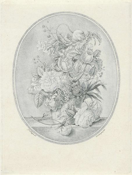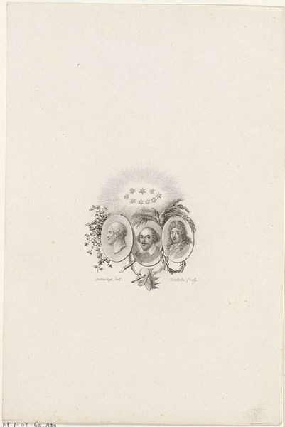 Curator: This delicate engraving, known as "Vignet met symbolen voor muziek," was created sometime between 1830 and 1845, its author, Henricus Wilhelmus Couwenberg. The Rijksmuseum is fortunate to house it. Editor: My first impression is of ethereality. It floats, doesn't it? The instruments and symbolic objects seem almost weightless against the wispy cloud backdrop. The lines, while precise, give it an air of lightness. Curator: It’s a symbolic representation of music in the Romantic era, you see? The lyre is central— an ancient symbol of harmony and inspiration. Consider the open music book beneath it. Music unveiled. Editor: I am also drawn to the radiant light emanating from behind the lyre. That bursts, combined with those cloud-like shapes underneath creates an interesting sense of depth despite its small size. What’s with the mask, though? Curator: The mask represents the theater, of course. Romanticism reveled in dramatic expression! And then the broken flute… it's more complicated. Potentially representing lost melodies, muted inspiration or passing of an era perhaps? The musicality of silence? Editor: Muted, perhaps literally. A broken object introduces a note of dissonance amidst all this harmony. From a formalist point of view, this adds an interesting visual tension. Curator: Exactly! All these objects clustered together represent the synthesis of artistic endeavors which Romanticism pursued so dearly. And look at the rose— a quintessential Romantic symbol. A single bloom suggesting beauty, fragility and temporal loveliness all at once. Editor: The composition is also quite dynamic for such a small piece, creating a rhythm to the artwork. Our eyes bounce between the musical score, to the lyre to the mask without rest. The artist carefully plays with tonal variations. Curator: Very astute. To me, the enduring allure lies in its intricate use of symbolism, capturing a period fascinated by feeling. A world saturated in artistic interpretation and the symbolic resonance of even the humblest things. Editor: Agreed. Examining Couwenberg's print, we observe how simple lines and balanced forms still can deliver a symphony of visual, emotional and historical context.