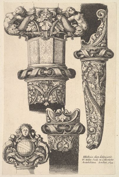 Balthasar Sigmund Setletzky designed this print of vases and a winged head, but we aren’t sure when. The design gives an insight into the world of the 18th century artisan, showing us the kind of objects they were thinking about and the visual language they used. Made in the German lands, this aesthetic was typical across Europe, where classically inspired motifs were being revived in fanciful ways. Note the cherubic head and acanthus leaves combined with other strange, imaginary creatures. Such images would have been part of the visual vocabulary available to carvers and sculptors, and a pattern book from which wealthy clients might select the designs for their homes. To understand the place of images like this, one might look to period interiors, auction catalogs, and other prints. What can the circulation of ornament tell us about 18th century society?