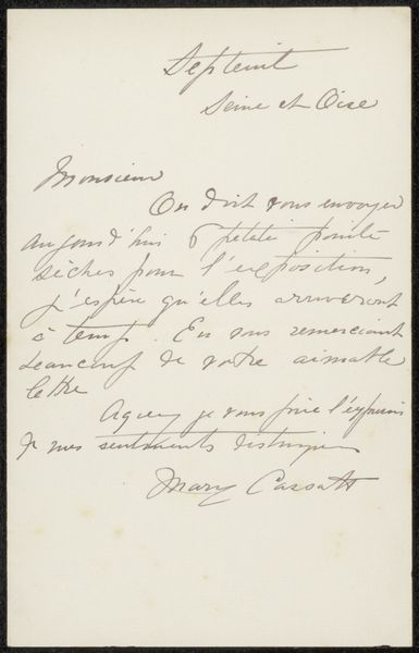 This is a letter to Alberto or Giovanni Caramelli, crafted by Johannes Bosboom, a figure of the Dutch Romantic era. Bosboom, positioned within the artistic and intellectual currents of the 19th century, engaged with themes of faith, community, and the sublime. The letter, seemingly a personal correspondence, offers an intimate glimpse into Bosboom’s relationships and the social fabric of his time. The handwritten script, with its loops and flourishes, speaks to a time when communication was a tactile, personal act. In the details of his note, we sense the intimate exchange between individuals, shaped by shared experiences and mutual understanding. Consider the labor involved in creating such a missive, the time taken to pen each word, and the anticipation of its recipient. It is a poignant reminder of the human connections that underpin art and society, and a window into the lives and experiences of those who came before us.