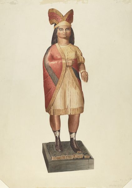 This anonymous watercolor rendering depicts an Indian Figure, carefully delineated with precision. The artist seems to have worked slowly, patiently building up layers of thin washes to create depth. I'm particularly drawn to the textural contrast in the figure's attire. The soft, draping folds of the yellow cloak cascade around the figure's shoulders, while the stiff rectangular book creates a dynamic tension. Note how the red bands bordering the hem of his dress appear, the paint is thick and opaque, adding visual weight and a sense of groundedness to the figure. The surface is relatively smooth, with no visible brushstrokes, which gives the piece a sense of formality and restraint. The painting has an affinity with the precise realism of a painter like David Hockney. There’s this wonderful feeling that the artist is engaged in a slow, observational process, each element carefully considered and recorded. Like all art, this is not just a record of observation, but also a demonstration of seeing.