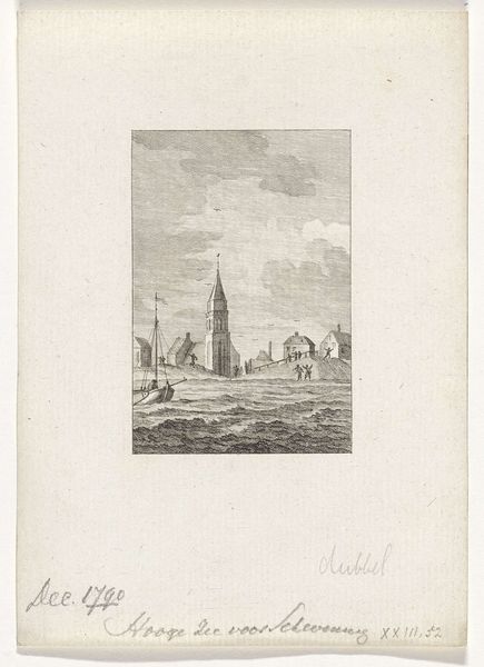 Editor: This is *Kruiend ijs aan de Waal, 1789*, or "Drifting Ice on the Waal," a black ink drawing by Reinier Vinkeles from the late 18th century, currently housed in the Rijksmuseum. It feels desolate; the jagged ice, the stark church… What can you tell me about it? Curator: It captures a specific, almost apocalyptic moment in Dutch history. Consider the drifting ice itself. Ice is a symbol, isn’t it? Here, it suggests the overwhelming power of nature, disrupting societal order, a "state of exception." But tell me, what’s the most striking symbolic element to *you*? Editor: Probably the church steeple rising above the chaos, right? Curator: Precisely! A constant, seemingly unmovable point. The church would’ve been a symbol of resilience, perhaps even divine protection during uncertain times. This interplay of chaos and order is a powerful symbolic language. Now consider how these images might speak to collective memory. Editor: So, it's not just about a literal depiction of a cold winter, but also a reflection on Dutch resilience, like a visual time capsule? I guess the date inscribed on the paper reinforces that specific moment in time. Curator: Exactly! Cultural memory crystallizes around potent images. They allow people to relive and renegotiate historical moments through symbol-laden representations. Images carry emotional weight. What feelings do you think the artist, or even contemporary viewers, were trying to elicit and share? Editor: Definitely anxiety about the future, but perhaps also a sense of shared experience and endurance in a hostile world? I never considered how symbols carry emotional history. Curator: Indeed. Understanding this gives us greater empathy with people long gone but connected to us, still, by visual experience and cultural understanding.