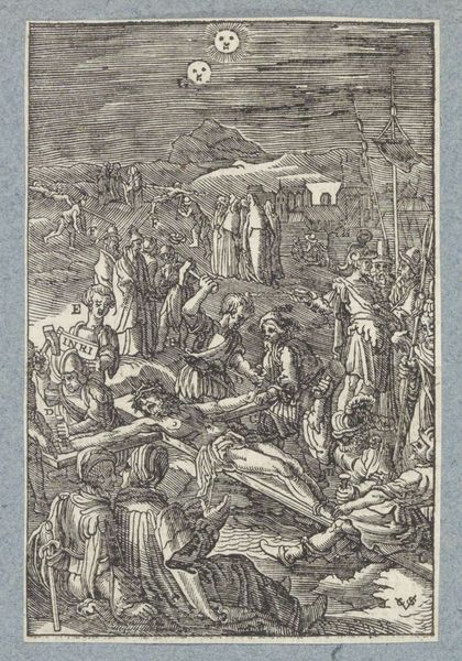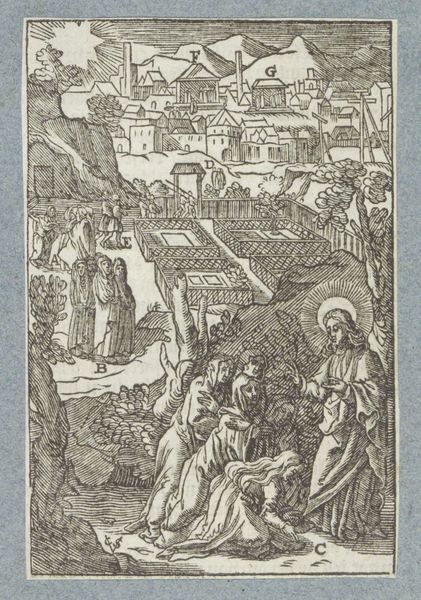 Christoffel van Sichem II created this woodcut, depicting ‘Christus verschijnt aan Maria Magdalena,’ or Christ Appearing to Mary Magdalene, sometime between 1581 and 1658. During the early 17th century, the Dutch Republic was experiencing a time of religious and political upheaval. Van Sichem, working within this environment, presents us with an intimate, yet theologically charged, scene. Mary Magdalene kneels before the resurrected Christ, her posture conveying a mix of awe and supplication. This moment, rich with emotional and spiritual significance, is rendered within a cultural context grappling with questions of faith, authority, and individual experience. How might this representation challenge or reinforce traditional notions of gender and religious authority? What does it mean to depict this encounter in a rapidly changing society, one questioning established hierarchies? Consider the emotionality of this biblical scene, and how it might resonate differently depending on one's social position.