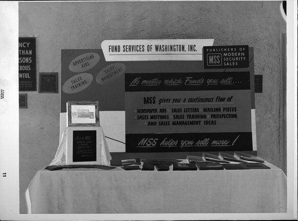 Editor: This photograph by Durette Studio captures an "Untitled (display for wood primer)." The stacked cans of Cuprinol really give it a sense of repetition, almost like a minimalist sculpture. What kind of cultural memory does this image trigger for you? Curator: The Cuprinol display case immediately reminds me of the post-war era's fascination with efficiency and material progress. The promise of “protection” and “stabilization” through a single coat speaks to a cultural desire for permanence, for warding off decay – both literal and symbolic. What does it suggest about our relationship with nature? Editor: I hadn't considered the fear of decay aspect! I see now how this image reflects deeper anxieties and aspirations.