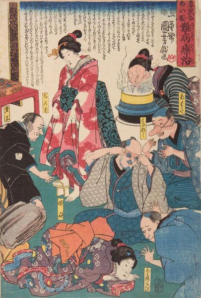 Editor: This woodblock triptych, "Surprise Attack at Night at Kumasaka" by Utagawa Yoshitora, depicts a chaotic battle scene. What can you tell me about the means of production of prints like this? Curator: We can consider the labor involved in creating the woodblocks themselves. How does the process of carving and printing, a collaboration between artist, block carver, and printer, impact our understanding of authorship and artistic value? Editor: So, it's not just about the artist's vision but also the artisans who physically made it? Curator: Precisely! Examining the materials – the wood, the inks – and the socio-economic context of their availability sheds light on the networks of trade and consumption that underpinned the creation of these prints. Editor: That's fascinating, looking at the whole system and not just the individual artwork. Thank you. Curator: My pleasure. Thinking about art as a product of a complex system always reveals unexpected insights.