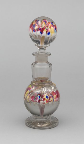 This paperweight, made of glass by the New Jersey Glass Co., captures something of the playful, experimental spirit of artmaking. Look at how the colored streaks of red, blue and green are captured, suspended in clear glass, like a captured moment. The texture is all smoothness and translucence, yet the colors remain vibrant, almost like frozen fireworks. It's fascinating how the physical properties of the glass both magnify and distort the colors, creating an alternate reality within its curved surface. Notice the way the colors seem to radiate from a central point, creating a sense of depth and movement. It's like a tiny universe contained within a simple object. Thinking about the process, it reminds me a little of Dale Chihuly's work, but on a miniature scale. Like a lot of art, it’s not about perfection; it’s about capturing a moment, an idea, a feeling.