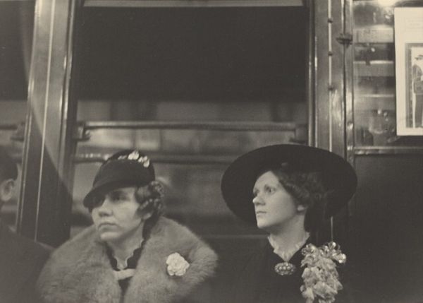 Ilse Bing's photograph "Street Fair, Paris" captures a fleeting moment with such intentionality, it's like a still from a dream. The tones, mostly monochrome, feel considered, each shade of grey a deliberate choice. It’s interesting how Bing plays with focus and blur, doesn’t it? Look at the man's face, the crispness of his profile, against the soft, almost ghost-like figure of the woman next to him. The surface isn't just a record, it's a feeling. Notice how the light blurs, creating a sense of movement, of being caught in the flux of the fair. The edge of the man's hat, sharply defined, contrasts with the blurred lights in the background, giving the image depth and a kind of dreamy quality. Bing's work often reminds me of artists like Brassai, capturing the essence of Parisian life with a similar blend of grit and poetry. What I love most is how she embraces ambiguity, allowing the photograph to be both a document and a meditation on seeing itself.