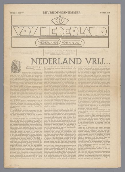 Editor: We’re looking at “'t Werkende Volk. Strijdblad voor de "Nationaal-socialistische beweging der Nederlanden"” which translates to "The Working People. Battle Newspaper for the "National Socialist Movement of the Netherlands," a poster or perhaps a journal cover from possibly 1942 by Jan de Haas. It's a piece of editorial typography, printed. The starkness and the typeface give it such a severe, almost aggressive feel. What's your take? Curator: Aggressive is spot on. That direct, almost confrontational tone leaps right out, doesn't it? It's fascinating, unsettling even, how typography alone can become a weapon. But think about the intended audience. Who do you imagine they were trying to reach with this propaganda? Do you think the paper itself looked worn and yellow when published, as it does now? Editor: Presumably, the Dutch working class who were sympathetic to the Nazi ideology. I would imagine it would have looked very striking and new to attract followers. Now, it just looks dated and old, perhaps losing its impact. How did the "Dutch Golden Age" affect work like this one, since it is one of its described styles? Curator: Interesting question. Its invocation seems deliberately perverse. What elements do you recognize from Dutch Golden Age art, and how are they deployed here? Editor: Well, the Golden Age was known for its realism and depictions of everyday life. This… appropriates that sense of "the people," but twists it into a tool for political manipulation. It is not actually like golden age painting in terms of rendering style, but references it more loosely in ideal. What a dark perversion. Curator: Precisely! A visual echo, warped for a sinister purpose. See how knowing the history – both artistic and political – changes the way you see it? I came in thinking the art was uninteresting, but having this discussion brought out different values from what it depicts. Editor: Absolutely. It's a chilling reminder of how easily aesthetics can be co-opted.