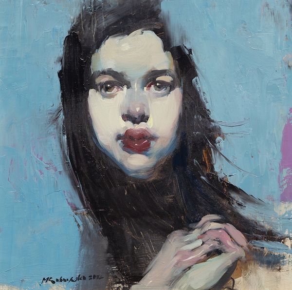 Dimitris Mytaras created this artwork entitled "Theatrical Figure on a Yellow Sofa" using paint, at an unknown date. Here, the woman’s pose, with a finger pensively touching her lip, immediately evokes a sense of introspection. The gesture—ubiquitous in Western art—can be traced back to classical antiquity and is meant to capture a moment of deep thought or contemplation. Think of the Roman philosophers depicted in similar poses, or even the Renaissance depictions of melancholic saints. This gesture carries a weight of cultural memory, continuously resurrected across centuries. The modern twist Mytaras brings is the setting of the theatre, introducing a layer of performance and role-playing. Consider how the same gesture of contemplation might have been performed by Hamlet, a timeless act of self-examination and uncertainty. This is an unconscious echo resonating through time, a potent reminder of our shared human experience.