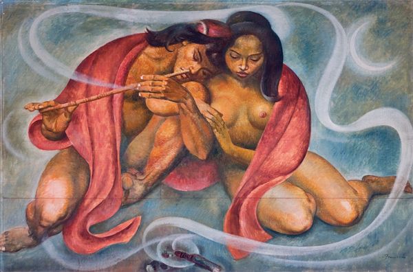 Jahar Dasgupta created this painting, titled Eternal Love VI, sometime after 1942. Dasgupta, an Indian painter who attended the Government College of Art & Craft, Calcutta, is known for his distinctive style that blends modern and traditional Indian art forms. Here, two women are intertwined amidst several swans, all rendered in vibrant reds and greens, and speckled with white dots. The swans evoke a sense of purity and grace, often associated with themes of love and relationships. But, in the Indian context, they can also represent spiritual awakening. The women's embrace conveys intimacy but also perhaps the complex bonds of family and society. Dasgupta’s work frequently emphasizes the emotional and spiritual dimensions of human existence. “I want to show the inner feelings of my subjects,” Dasgupta once said, "the joy and sorrow that make us human.” Eternal Love VI invites us to reflect on the enduring connections that define our lives, as well as how those connections are shaped by the broader cultural and historical forces around us.