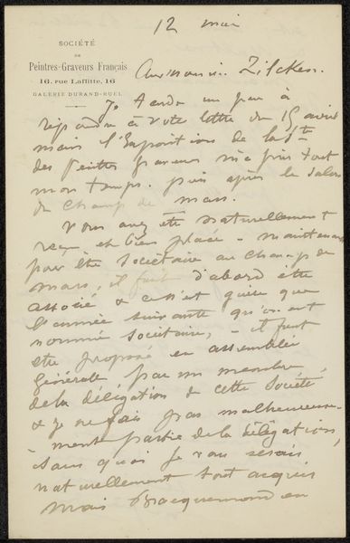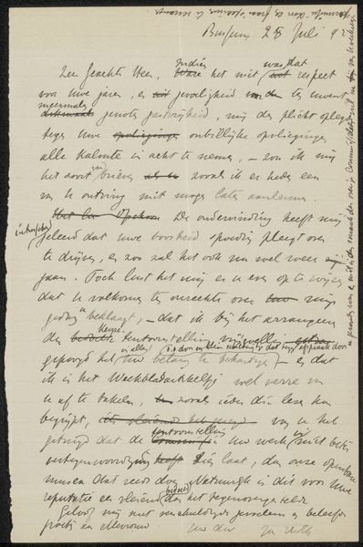 Curator: I’d like to introduce "Brief aan Pieter Haverkorn van Rijsewijk," a letter by Adolphe Poitout, possibly dating between 1905 and 1907. It combines graphite and ink on paper. Editor: Immediately, I'm struck by its delicacy. The density of text creates an intricate, almost textile-like pattern across the page. It’s visually quite calming, surprisingly. Curator: Observe how Poitout utilizes varied stroke weights in the pen work, almost playing with positive and negative space within the hand-lettering. Note especially the contrast between the casual opening and the controlled script of the body. Editor: It gives a glimpse into a bygone era of handwritten correspondence, doesn't it? I can almost feel the weight of the news it carries. The reference to the death of "Jeugkind," I assume, Johann Barthold Jongkind the painter—suggests a moment of collective artistic reflection. The inquiry regarding Jongkind’s birthplace even more. This feels less like a simple letter and more like a personal act of preservation, linking artistic lineage to specific locales. Curator: Exactly. It's about lineage, both personal and artistic. Notice the elegant looping ascenders and descenders—purely decorative elements, they establish visual rhythm. It has to be said, such hand-lettering carries social signals of class and education. Editor: The constant seeking after Jongkind’s real place is meaningful: a man is from a place, he will die, the news of his passing will cross the world by printed word. The sender then replies with the desire to clarify origins. This desire gives off real implications as to the place we occupy after passing. It shows that, by knowing where a man came from, you have that much of him in the future. Curator: It really boils down to structural tensions, right? This piece creates contrasts between spontaneity and control, density and openness, information and ornamentation. Poitout balances opposing elements into a cohesive visual statement. Editor: It serves as a testament to the endurance of cultural memory. Poitout's script bridges time, whispering secrets about art, place, and mortality, I love to explore art through what symbols it shows of emotional impact through history. Curator: Precisely, the construction is very striking, offering new aesthetic revelations.