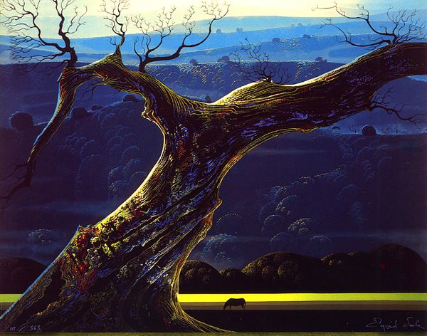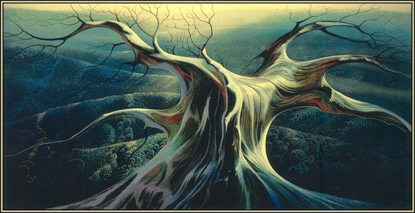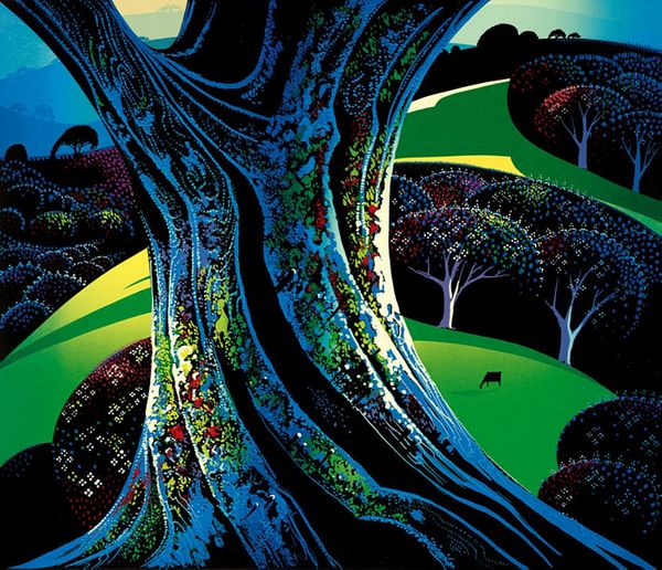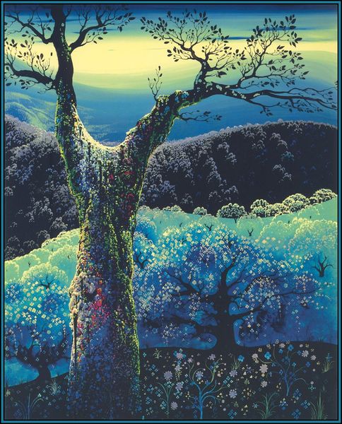 Eyvind Earle painted “Giant Oak” with a meticulous eye for detail and color, characteristic of his distinctive style. Earle was an American artist, author, and illustrator, perhaps best known for his work with Walt Disney Studios, where he was a background artist for animated features like “Sleeping Beauty”. “Giant Oak” presents a perspective of nature that feels both familiar and dreamlike, typical of much of Earle's work, inviting us to consider our relationship with the natural world. Earle’s artistic choices invite an emotional response, one where nature is simultaneously accessible and beyond reach. It is a complex interpretation of nature where both power and fragility are present. In the mid-20th century, with growing concerns about industrialization and environmental degradation, representations of nature became poignant reflections on humanity's impact. Earle's trees, while seemingly traditional subjects, subtly question the prevailing narratives of progress and dominance. The painting encourages a personal reckoning with the beauty and vulnerability of our environment.