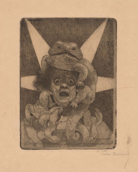 Curator: What a peculiar piece! At first glance, I'm struck by its almost grotesque nature. Editor: Indeed. We’re looking at “Caricatured Chilean Figure, 1 Escudo, from the series Coins of All Nations (N72, variation 2) for Duke brand cigarettes.” It's dated 1889 and the profile is credited to W. Duke, Sons & Co. These cards were essentially advertisements packaged with cigarettes, a common practice back then. Curator: Packaged with cigarettes? That's fascinating! The ephemerality of it clashes sharply with the quite vivid and almost garish coloring. It appears to be printed, maybe even colored pencil was applied. A study in contrasts! It's a material object promoting another, highly consumable material. Editor: Exactly. The means of production here tell us much about consumer culture and marketing strategies of the time. And look closer at this…character! The clear "orientalism" styling is an indicator of socio-political leanings on global trade with countries outside the US. This was about shaping perceptions, national identity, and consumer choices. Curator: And not necessarily flattering perceptions, it appears! The figure is definitely an exaggerated and, dare I say, unflattering caricature. But where does this style come from? What traditions? Is it emulating some form of "naive art"? Editor: There’s definitely a leaning into Ukiyo-e influences. Though twisted, mangled perhaps to project Western biases and political agendas onto another nation’s symbol – hence the Chilean coin placed in the front, its value stated just below, like a trophy or asset that can be had. The institution, and the cigarette company, plays with ideas of global currency, which would surely play into how people conceptualized global economies. Curator: So this is an object promoting global capital that actively works by denigrating other countries. That puts the focus of material analysis squarely in an uncomfortable political field. So a colorful caricature it might appear to be on the surface, but a product of distinct colonial attitudes towards labor, resources, and how these enter consumer economies. Editor: Absolutely. These little cards were powerful tools. Analyzing this, especially as it resides in a place like the Met, highlights the importance of unpacking the narratives embedded within seemingly innocuous everyday objects, and the lasting effect those impressions leave on national imaginations.