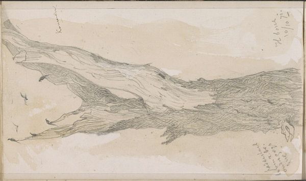 This is a drawing of mountains in Tirol, made by Johannes Tavenraat in the 19th century. The artist used graphite pencil, a relatively new technology at the time, on paper. The mountain is rendered through numerous short strokes, layered to suggest the mass and ruggedness of the landscape. This technique, requiring patience and attention to detail, reflects a shift in artistic practice towards direct observation and a sensitivity to the natural world. The marks follow the lines of the mountain, the build-up of hatching giving a sense of its three-dimensional form. The choice of pencil, a readily available and inexpensive material, suggests an accessibility and a democratisation of art production. It allowed artists to create detailed studies, capturing subtle nuances of light and shadow in a portable and immediate way. This drawing, therefore, not only represents a specific location but also embodies a broader change in the way artists engaged with their environment and the tools they used to depict it. It challenges us to consider the role of materials and processes in shaping our understanding of art.