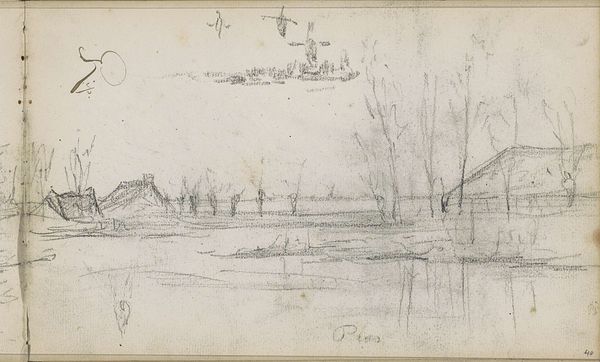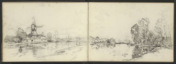 Curator: This is "Landschap bij Ingen," or "Landscape near Ingen," a drawing made between 1905 and 1910 by Willem Cornelis Rip. What are your initial impressions? Editor: Well, looking at the materials and how the artist used them, I'm struck by its simplicity. It appears to be pencil on paper, probably from a sketchbook. It's a quick study, focused more on capturing light and atmosphere than precise detail. There's an immediacy in the marks that speak to the labor involved. Curator: Indeed. And considering Rip’s context, particularly the burgeoning environmental movements of the early 20th century, this seemingly simple sketch could be interpreted as a quietly radical act. It prompts questions of land use, labor, and the individual’s relationship to the environment. It situates Rip within a larger discourse on landscape and identity. Editor: Interesting. The act of sketching in itself reflects a direct engagement with the landscape, doesn't it? Consider the materiality of the paper itself, probably a mass-produced item, allowing for greater access to art making and contributing to the democratization of art at the turn of the century. This simple drawing opens the door to analyzing the impact of industrialization on both the environment and artistic production. Curator: Absolutely. And the way Rip employs Impressionistic techniques to depict this landscape opens another avenue for exploration. The loose, gestural lines, the emphasis on light and shadow, all evoke a specific emotional response, almost a yearning for a simpler, more harmonious relationship with nature. The gaze becomes critical – who is this “nature” for? And how does class impact access to the leisure represented by a scene like this? Editor: It also prompts us to consider the social context of art consumption. The accessibility of drawing materials, facilitated by industrialized production, also democratized leisure time for observing and sketching the landscape, broadening art appreciation among the rising middle class. This sketchbook then isn't just a personal artifact but a small document that tells a larger social story. Curator: Precisely. It's about locating art within the complex network of social, political, and economic forces that shape both its creation and reception. It underscores art's power to act as a mirror, reflecting our evolving relationship with both the environment and with one another. Editor: It all stems from something as simple as pencil on paper. And that grounding in materiality allows us to see these wider connections so much clearer.