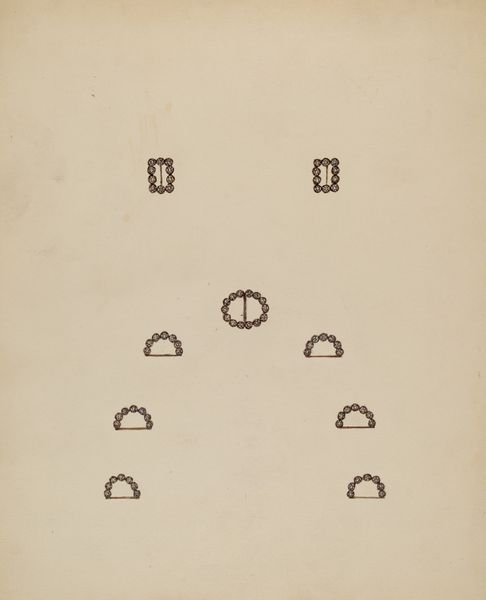 Valerii Lamakh created this work on paper titled *The Fourth 'Book of Schemes'. Album #1, the First Folder*. Here, we see six variations on a circle, each dissected and adorned with a series of black geometric shapes. The initial circle, with a single central point, serves as a stark, foundational element from which all other designs evolve. Note how the uniformity of these additions, carefully spaced and oriented, suggests a system or code. Lamakh engages the viewer in a semiotic game. The composition, with its structured layout, hints at an underlying order, while the subtle variations challenge any fixed interpretation. Consider the tension between geometric abstraction and representational allusion. The forms suggest both precision and organic shapes. This interplay invites an exploration of how structure and randomness coexist. Each shape functions as a signifier, contributing to a visual language that pushes the boundaries of meaning and form.
