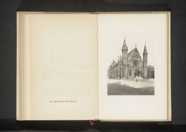 Editor: Here we have a captivating albumen print dating back to before 1874, titled "Tombe voor de vrouw van Saadat Ali Khan in Lucknow," credited to Darogha Ubbas Alli. What strikes me is how it's presented as part of an open book. It feels almost voyeuristic, as if we're peeking into a personal travel diary. What stories do you think this photograph whispers to us? Curator: Ah, yes, the whispering. It speaks to me of forgotten grandeur, doesn't it? This isn’t just a picture; it’s a portal. Consider the photographer, Alli, carefully curating this album. Each image is a fragment of a story he wishes to tell, steeped in orientalism but captured through a local lens. Does the presentation within the album change your interpretation, do you think? Editor: Absolutely. Knowing it's from an album adds layers. It transforms from a simple architectural record into a piece with a narrative, an intention. What exactly do you mean by "orientalism" in this context, though? Curator: The East, seen through a Westernized, sometimes romanticized, gaze. Though, in this case, it's more complex, a dance between local and colonial perspectives. Think of it as a staged encounter; Alli, capturing a space laden with personal history for consumption beyond its locality. It’s less about pure representation, more about conjuring an experience. What feeling does it evoke in you now? Editor: Now I see a tension – between reverence for the site and an imposed foreign gaze. I notice also, how the tomb seems isolated and pristine. Maybe the picture is revealing what was *chosen* to be recorded about the monument. That in itself becomes pretty interesting! Curator: Exactly! It’s about curated silences as much as what’s overtly shown. Consider how history can become like echoes in these tombs; photographs allow us to hear them, although we might not be hearing them "right." Perhaps a distortion can bring a certain perspective that’s all its own. Editor: Food for thought – it will take me a while to unravel. Thanks for unraveling a little of that with me today!
