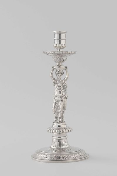 Editor: This piece is a Lidded Goblet and Table Bell crafted in 1851 by Johannes Mattheus van Kempen. It’s made of silver, and it feels very… regal. The craftsmanship is astonishing. What can you tell me about its significance? Curator: This object speaks volumes about the social aspirations of the burgeoning Dutch middle class in the mid-19th century. Notice the level of detail, the ornamentation; these elements reflect a desire to emulate aristocratic taste and display wealth. Editor: I see the echoes of Baroque, especially in the figuration and elaborate details, but I was under the impression Baroque was a style from much earlier than the 19th century? Curator: You’re right. Its resurgence as a historical revival style coincided with increased industrialization. Objects like this lidded goblet allowed the upwardly mobile to showcase their access to traditionally exclusive symbols of power and prestige, demonstrating both their financial capacity and their ‘cultural literacy’. What kind of narratives do you imagine being enacted around it? Editor: A show of status and wealth. Like this bell that they ring and a fancy wine that they drink. It gives an image of someone trying hard to emulate the aristocracy of old. Almost ostentatious... Curator: Precisely. The goblet and bell aren’t merely functional; they’re performative. They signal a shifting social landscape and the democratisation of luxury, but also potential tensions surrounding newly acquired wealth and its display. Editor: It's fascinating to see how an object can tell such a detailed story about its time. Thanks, I’ll look at decorative arts in museums very differently now. Curator: Indeed, studying an artwork in terms of social forces really shows us its role in its moment, and in the long history of class, aspiration, and artistry.