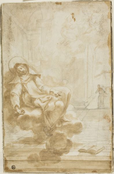 This drawing of Moses, whose artist remains unknown, is rendered in delicate strokes of brown ink on paper. The composition focuses on Moses, his form emerging from a softly shaded background. Notice how the artist uses line and shadow to define his figure, giving weight to his beard and the tablets he holds. The lines are not precise; rather, they blend to create a sense of movement and depth, especially in his hair, which seems to vibrate with energy. Consider the structure of the drawing itself. The artist seems less concerned with realistic depiction and more with conveying the essence of Moses. The tablets, slightly disproportionate, anchor the composition, while Moses's gaze and pointing finger direct our attention, suggesting divine law and guidance. This emphasis moves beyond mere representation, becoming an exploration of form and meaning. Ultimately, the drawing’s power lies in its capacity to invite contemplation, not only of its subject but of its own making. It is a reminder that art is a site of ongoing interpretation and discourse.