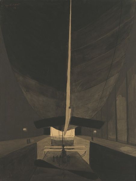 Ralston Crawford captured these fishing boats in Stornoway, Scotland, using gelatin silver print. This photographic process, popular in the 20th century, involves light-sensitive silver salts suspended in gelatin, coated on a base like paper. The stark monochrome emphasizes the materiality of the boats. You can almost feel the rough-hewn planks and thick ropes, the weight and texture of the vessels. Consider the labor involved in building and maintaining these boats, each element crafted for the demanding work of fishing. The ropes, essential for hauling nets, speak to the physical demands of the trade. Crawford invites us to reflect on the intersection of industry, labor, and the sea. This photograph serves as a reminder that even in fine art, the materials and the making process carry profound social and cultural significance. It challenges us to look beyond the image, and consider the human effort embedded within.