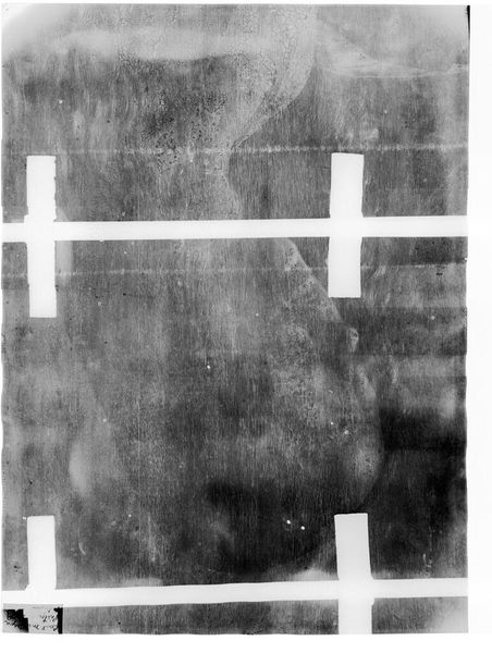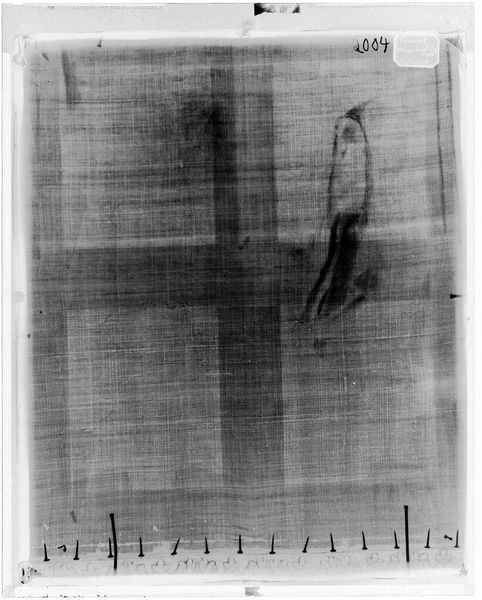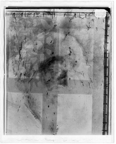 Curator: This is an X-radiograph of "Landscape," an artwork by John Constable. It's housed here at the Harvard Art Museums. Editor: At first glance, it feels like peering into the spectral layers of time, a ghost landscape almost. Curator: Indeed. The composition is fascinating. Note the strong vertical and horizontal lines; they create a very deliberate structure. Editor: But what's absent is just as compelling. This ghostly representation is revealing the underpainting, those hidden layers that are the result of the artist's decision-making process. Curator: Precisely. The X-ray reveals the bones of the painting, and it allows us to consider how the artist constructed the work. Editor: It makes me wonder, what does it mean to reveal these invisible histories? It reframes our understanding of creativity, doesn't it? Curator: It certainly invites a new perspective on materiality and artistic intention. Editor: An interesting perspective—it really makes you ponder the life cycle of the painting. Curator: I agree, a new level of appreciation can emerge when considering it in this way.