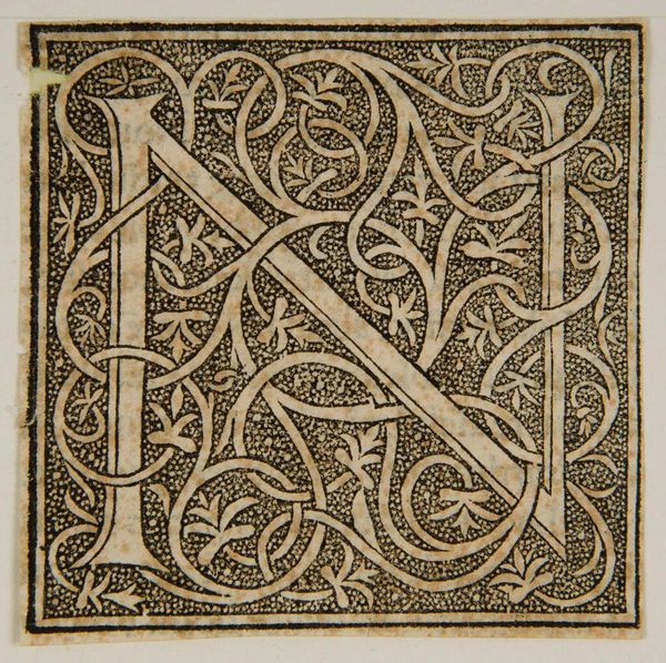 Curator: This woodcut, simply titled "Letter M," comes to us from an anonymous artist. Editor: It’s incredibly dense, almost claustrophobic with its ornate, organic forms pressing in around the letter. Curator: The interplay between the solid letterform and the swirling background establishes a fascinating tension, a dialogue between order and chaos. Editor: I see echoes of illuminated manuscripts and early printing’s struggle to reconcile handcraft with mechanization, where the letter symbolizes literacy's uneven accessibility. Curator: An interesting perspective, viewing the decorative elements as a commentary on social power! Editor: It begs the question: Who had access to the knowledge contained within letters, and who was excluded? Curator: Indeed, it allows us to consider how artistic choices can subtly reflect prevailing inequalities. Editor: Food for thought, underscoring how even the simplest graphic can hold complex meanings.