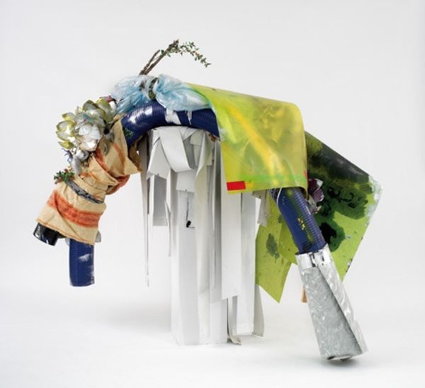 This small, untitled sculpture was made by John Chamberlain, and it’s constructed from painted metal. It’s the kind of thing that makes you stop and think about what sculpture can be. Chamberlain took industrial scraps, the leftovers of our world, and turned them into something beautiful, or at least thought-provoking. Look at the way he crumpled and twisted the metal, like he was sketching in three dimensions. The colors are bold – oranges, blues, blacks – almost like a painter's palette gone wild. I am drawn to the sharp edges and unexpected curves. There’s a part of the piece where the orange paint is chipped away, revealing the raw metal underneath. It’s a reminder that art is not always about perfection, but about process, about revealing the layers of creation. It makes me think of artists like Kurt Schwitters, who also found beauty in the discarded and the overlooked. It’s like Chamberlain is saying, "Hey, even wreckage can be art." And I love that.