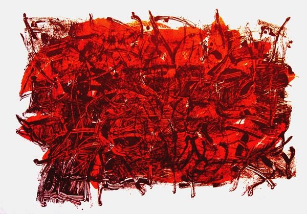 Ivan Marchuk made this painting, "Composition No. 349," using a very particular approach to mark making. It’s all about lines, an intricate network of them, like he’s knitting with paint. Looking closely, you can see how the texture builds up, almost like a topographical map. The colours are earthy – browns, blacks, with a touch of ochre, and that stripe of red – creating a really grounded, organic feel. The paint doesn’t seem too thick, but the way those lines layer gives it a physical presence. It's hard to tell what tools he used, maybe fine brushes or even something unusual, but the focus is the making of each line. That left edge with the red stripe – it's almost like a control, a break from the chaos, reminding us of the flat surface of the canvas. I’m reminded of Agnes Martin’s grids, but wilder, more untamed.