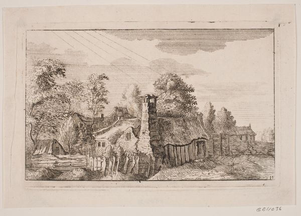 Editor: This is Plate XLI by Jacques-Francois-Joseph Swebach, and it depicts a scene with figures and a horse-drawn cart. It looks like an etching. What can you tell me about it? Curator: Well, consider the labor embedded within this image. Notice the working animals, the loaded cart, and figures engaged in what seems to be commerce. The print medium itself democratized art, making scenes like this accessible to a broader audience. How does the dilapidated building in the background play into this narrative of production and consumption? Editor: That's a great point; it makes me wonder what that building used to be, and how it connects to the scene of commerce in the foreground. Thanks! Curator: Indeed! It makes one think of the past versus the present.