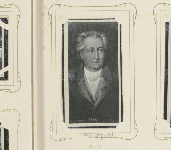 Curator: Here we have a piece entitled "Portret van een oude man met bakkebaarden," or "Portrait of an old man with sideburns" created between 1883 and 1887. It's currently housed here at the Rijksmuseum. Editor: It’s arresting. The sepia tone gives it a somber gravitas, and the oval format, encased in a rectangular frame, creates a kind of window onto another time. It has an interesting composition. Curator: Indeed. Focusing on its formal properties, observe the contrasting geometry—the sharp rectilinear border that highlights the organic, softer oval containing the portrait. The subtle tonality allows a fine examination of line and texture, revealing the character through light and shadow. Editor: Yes, and the portrait itself presents a fascinating iconography. The man’s face, etched with wrinkles, speaks of endurance and wisdom. The slightly askew tie and the formal coat suggest a person who respects convention, but also perhaps has a touch of rebellious individuality. The sideburns suggest virility, strangely. Curator: A potent observation. Considering the context of photographic portraits in the late 19th century, the symmetry, controlled lighting, and pose direct our attention to the planes and surfaces of the face. Editor: The sideburns might also point to a link with military service or some past involvement with formal, traditional structures. There's a sense of history embedded in those whiskers. He appears somewhat melancholy and has the air of someone who's witnessed significant change. Curator: This is wonderfully illustrated by the juxtaposition of linear formality against the flowing lines of hair, visually presenting the conflict between tradition and nature itself. The sepia lends an essential classical quality to the surface and provides structural unity. Editor: It resonates. I see this and imagine stories of his past—triumphs, heartbreaks, evolving technology… The past whispers secrets from this one carefully framed face. Curator: The piece becomes more profound with such considerations. Analyzing the compositional elements alongside historical context elevates it from mere image to a powerful expression of time and the human condition. Editor: Absolutely, considering it as both artifact and representation enriches our understanding, bringing us closer to both art and life.