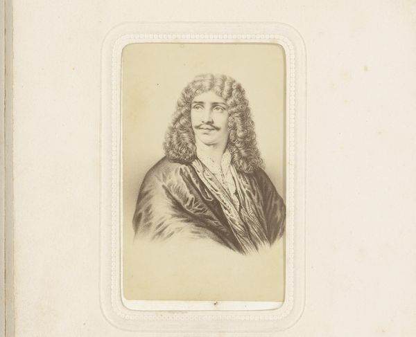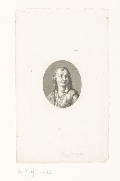 Curator: This photographic reproduction captures a print of a portrait depicting Jacques Jordaens, rendered by an unknown printmaker. It likely dates from between 1880 and 1940 and is part of the Rijksmuseum collection. Editor: It’s rather striking. There’s a directness to his gaze, isn’t there? A hint of baroque drama, even in this monochromatic image. The lines are quite meticulously rendered. Curator: Indeed. As a print, likely achieved through etching or engraving, the reproductive process itself introduces a fascinating layer. It democratizes the image, making the artwork of Jordaens more accessible for broader consumption. Consider the labour involved in creating the printing plate, and its intended circulation. Editor: That layering of meaning intrigues me too. Looking closely, the textures achieved through the varying line weights, the almost tangible feel of the fabric of his hat… It all contributes to a powerful sense of depth and dimensionality within a two-dimensional plane. The oval border contains the unruly Baroque spirit quite effectively, don't you think? Curator: Absolutely, but let's also consider the role this reproduction would have played in the art market of the time. It facilitated the study and dissemination of Baroque art, influencing tastes and collecting habits. This connects directly to the value assigned both to Jordaens’ artistry, and this act of re-production by another artist. Editor: Yes, it becomes an object of study in its own right. Thinking of the line work further – the way the engraver captures light reflecting from his collar…there’s such precision. Each line performs a specific function to achieve that effect. Curator: And this reproduction now exists within the historical arc connecting the original moment of Jordaens, the artisan print maker and the market mechanisms that led to it being preserved in the museum's archive. A convergence of factors enabled its journey. Editor: Well, viewing it has certainly made me consider its layered construction. It also emphasizes the careful calculation and aesthetic understanding in representing a human figure so minimally and so realistically. Curator: Precisely; examining art through production, labour, materiality and access enhances our insights and offers profound revelations.