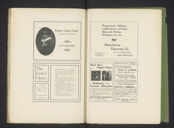 Editor: This is a reproduction of an early graphic art print featuring a portrait of Angèle van Loo, it's dated before 1900. It's featured within the pages of an old theater publication. I'm struck by how this single portrait attempts to capture the essence of her personality, I’m curious: What do you see in this piece, focusing on its intrinsic artistic qualities? Curator: The immediate formal elements that capture my attention are the tonal variations within the print, achieved, I imagine, through photographic or printmaking techniques. These tones create shape, primarily her form. How do you perceive the structural balance of the composition? Editor: The image appears rather symmetrical, with the face centered, creating stability...almost like an icon? Curator: Indeed, the symmetrical arrangement contributes to a sense of stability and timelessness. Furthermore, notice how the subject's gaze directs the viewer’s attention. Her features present very clean geometric properties. Can you spot any shapes and structural lines that might hold meaning, whether conscious or accidental, in the placement and angle of her head, shoulders, and eyes? Editor: Her head is slightly tilted which gives off a playful tone, defying the constraints of the structure that is given by the central placement. The shadows around her neck creates some dimension…The more I study the portrait, the more I notice subtle deviations in balance and composition. Curator: Precisely! And so we discover how careful arrangements create and resolve tension within the pictorial space. Close inspection informs a great understanding, doesn’t it? Editor: It does, the structure holds the key to its aesthetic power. Thank you for illuminating the beauty within this piece.
