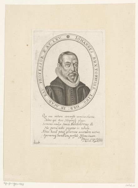 Johann Pfann created this portrait of Johann Saubert in 1646, likely using etching or engraving techniques on a metal plate to produce the print. The image's appearance is influenced by the linear nature of the engraving process. Close examination reveals a network of fine lines and cross-hatching that create the tonal variations and details of Saubert's face and clothing. The process involves skilled use of tools to incise lines into the metal, demonstrating a mastery of technique. Beyond its aesthetic qualities, the print reflects the broader social context of 17th-century Europe, where printed portraits served as important means of disseminating images of prominent individuals. The production of prints like this one was closely tied to the growth of capitalism and consumer culture, as they were produced and sold in multiples to a growing market of consumers. The skilled labor involved in the process is a reminder of the human effort behind the creation of even seemingly simple images. The piece challenges distinctions between fine art and craft, highlighting the importance of understanding materials, making, and context in grasping the full meaning of an artwork.