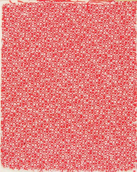 Bernard Aubertin made ‘Clous’ out of nails and paint; the exact date of its making is unknown. Aubertin, a key member of the Zero art movement, created artworks in the post-war period. The movement sought to strip away the artifice of traditional art forms, focusing on raw materials and elemental forms. The monochromatic red surface of 'Clous' is disrupted by the systematic arrangement of nails. This transforms a simple, commonplace object into a field of texture and shadow. The use of nails can be seen as a metaphor for the painful realities of the post-war era, where violence and destruction were deeply felt experiences. The artist prompts a reconsideration of the relationship between destruction and creation. The artwork confronts viewers with questions about materiality and the hidden meanings within everyday objects. Aubertin’s artistic practice challenges us to recognize how historical events shape our perceptions, and how we find the potential for beauty even in the most unlikely of places.