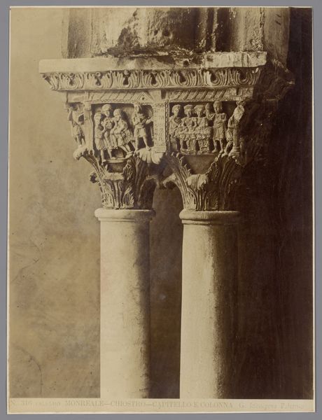 Giuseppe Incorpora created this photograph of a capital in the cloister of Monreale Cathedral at an unknown date. The image invites us to consider the role of photography in the late 19th century in documenting and interpreting historical and religious sites. Incorpora, working in Sicily, captured this close-up of a column capital, emphasizing its ornate carvings. These capitals, adorned with stylized birds and intricate foliage, reflect a fusion of Norman, Arab, and Byzantine artistic influences, typical of Sicilian art in the 12th century. Monreale Cathedral itself was a powerful symbol of Norman rule and Christian authority in a culturally diverse region. Incorpora’s photograph not only documents the cathedral’s architecture, but also participates in the 19th-century project of national identity formation through historical preservation. By focusing on details like this capital, Incorpora draws our attention to the visual language through which power, faith, and cultural identity were constructed and negotiated. Researching the archives of Sicilian photography and Norman-era art will help contextualize this work.