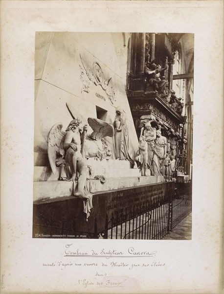 This is a photograph by Paolo Salviati, capturing a detail of the monument to Antonio Canova in Venice. The monument commemorates Canova, a hugely influential sculptor who died in 1822, and was erected in the Santa Maria Gloriosa dei Frari. What makes this monument so interesting is its institutional history. It was designed by Canova himself, initially as a tomb for Titian. Canova’s students adapted it to honor their master after his death. Seen in the light of social history, we can understand how 19th-century artists and institutions created a canon of artistic greatness, with Canova, and Titian before him, being elevated to a position of cultural authority. To truly grasp the monument's significance, archival research would reveal the social networks and institutional forces that shaped Canova's legacy and the artistic values of the time.