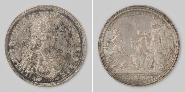 This bronze medal of a standing female figure was created by Paolo da Ragusa around the 15th century. The circular composition immediately draws the eye to the figure in the center, framed by the inscription around the edge. The artist’s use of line and form to convey depth and movement is striking. Note how the figure emerges from the flat surface through a play of light and shadow. The lines that define the drapery create a sense of volume, while the textures, though subtle, suggest a tactile quality. This interplay between flatness and depth is not merely decorative; it challenges the viewer to reconcile the object's material reality with its representational function. The figure, presented in a classical style, raises questions about the revival of classical ideals during the Renaissance and how artists used these forms to express new cultural and philosophical ideas. This medal serves not only as a work of art, but as a cultural artifact that reflects the intellectual currents of its time.