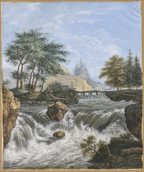 James David Smillie’s "On the Ausable" is a watercolor work, presenting a landscape dominated by rocks and water. The eye is immediately drawn to the composition's structure – a series of horizontal and vertical elements that create a sense of depth and containment. The cool, dark tones of the water in the foreground contrast with the lighter, warmer hues of the rocks and foliage, establishing a visual rhythm. Smillie's use of layered washes allows the white of the paper to shine through, creating a luminous effect that captures the play of light on the water's surface. This emphasis on formal elements reveals the influence of structuralist thought, where meaning is derived from the relationships between constituent parts. The painting can be interpreted through a semiotic lens, with the rocks and water serving as signs that signify the power and beauty of the natural world. The overall effect is a work that invites contemplation on the interplay between representation and reality. The tension between the static rocks and the fluid water highlights how formal contrasts can convey deeper philosophical ideas about nature and perception.