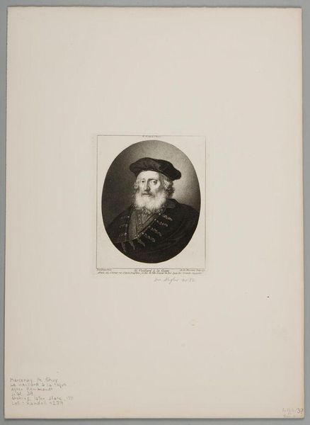 Curator: Antoine de Marcenay de Ghuy created this etching, "The Melancholic Old Man." It's held at the Harvard Art Museums. Editor: Intensely felt, isn't it? You can almost smell the ink, the paper… the isolation. Curator: Indeed. This work reflects the era's fascination with depicting emotion and character, referencing, of course, the Dutch Masters. Editor: Note the etching technique though; the cross-hatching builds form. One can see the lines that define the very textures of the man's existence. Curator: The "melancholic" aspect aligns with late 18th-century sensibilities, a period marked by social and intellectual ferment. Editor: Absolutely. The image becomes a record of skill, intention, and the cultural values that determine its meaning and market. Curator: Food for thought indeed; I'm left considering the role art plays in reflecting society's values. Editor: And I'm still thinking about the artist's hand, and the enduring power of a carefully crafted mark.