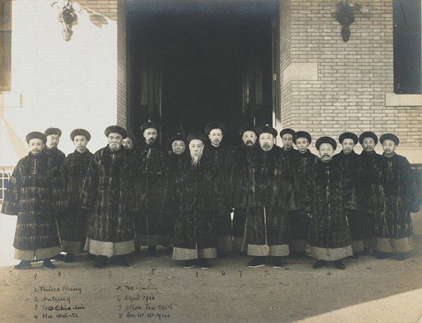 Editor: This photograph by J.H. Adams, titled "Races, Immigration," shows a crowd awaiting admission. The sepia tones create a sense of historical distance. What compositional elements stand out to you? Curator: The photograph’s formal structure is quite compelling. Note the stark contrast between the foreground and the background. The geometric rigidity of the architectural elements, juxtaposed with the organic mass of people, creates a visual tension. Editor: I see that. The strong verticals and horizontals do frame the figures. What does that tension suggest? Curator: It begs the question: how does the geometric order imposed by the architecture interact with the humanity contained within it? What is being contained? Editor: It makes me think about control and freedom. I hadn't considered the architecture as a character in the scene. Curator: Indeed. The artist’s careful arrangement of light and shadow further accentuates this interplay. Light here functions as a metaphor of hope. Editor: I’ll definitely look at photographs differently now.
