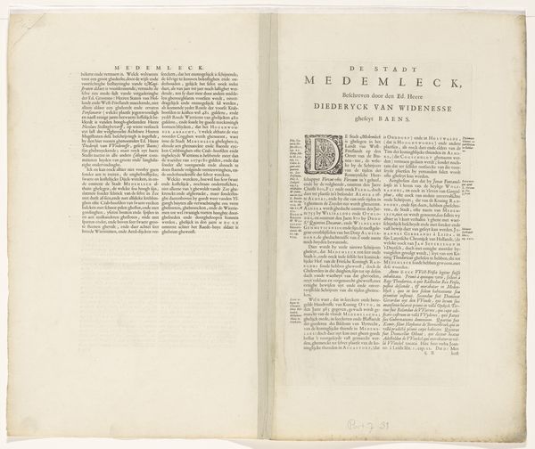 Editor: So, this is "Inleiding op de twaalf Sibillen," made around 1653-1654 by Jan Philipsz Schabaelje. It's a print, an engraving on paper currently held at the Rijksmuseum. It really strikes me how much text is crammed onto the page! What grabs your attention in this piece? Curator: From a materialist perspective, it’s fascinating to consider the labor involved in producing these printed pages. Think about the engraver's skill in translating text and image onto a plate. How was this plate created and what processes where used for printing multiple copies, distributing religious and political propaganda and theological texts? Editor: That's a good point. I hadn't considered the physical work that goes into it. It makes me think about mass production. Curator: Precisely! The rise of printmaking allowed for wider dissemination of ideas. What kind of paper was it, how readily was this paper and ink source? This piece uses of printed text that also creates meaning. How do you think this work challenged the hierarchy between art and craft at the time? Editor: Well, if it were easily reproduced, would it have even been considered fine art? Was it challenging that notion, and how did that relate to labor conditions at the time? Curator: Exactly! By questioning its own mode of production and the consumption it engenders. These questions challenge notions surrounding what can be considered a work of “art,” or just simply work. Considering this period of increasing global trade in resources as well as labour, how could such piece of work be related? Editor: This is a completely different approach than I usually take, looking more at the social implications rather than the content on the page itself. It helps see the artwork's role as both an object and a piece of a larger production system. Curator: Indeed. By focusing on its materiality and means of production, we gain a much broader understanding of its historical and cultural significance.